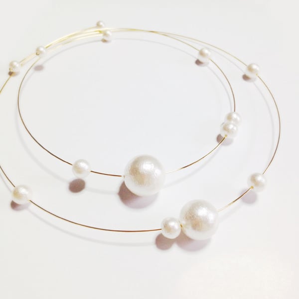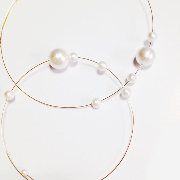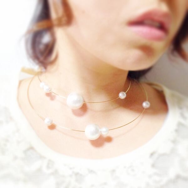 華奢な細身のワイヤーチョーカーにコットンパールが泡のようにぷくぷくと付いています。