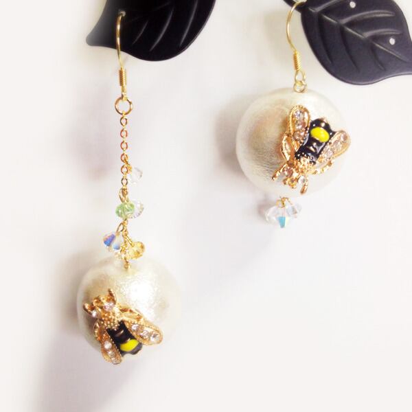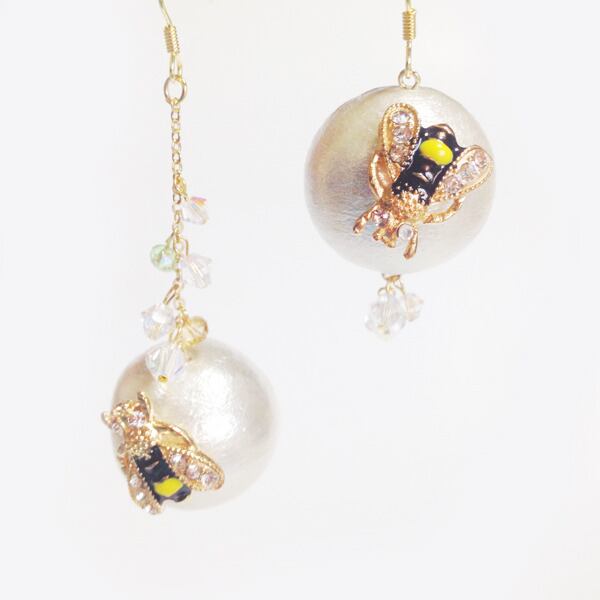 蜂の位置が左右異なるアシンメトリーのデザインなので片耳ずつでもお楽しみください。