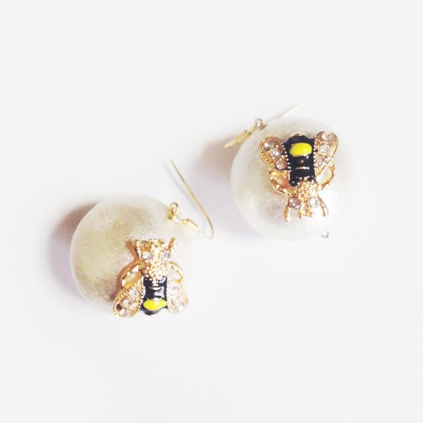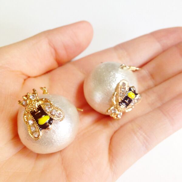 蜂の位置が左右異なるアシンメトリーのデザインです。