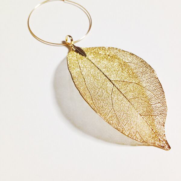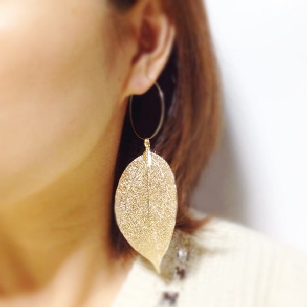 本物の葉をそのまま金属にした、葉脈が透けるとても美しいピアス。
